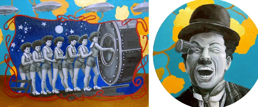 Viaje a la luna | Díptico | cuerpo rectangular 30 X 40 cm. | Acrílico sobre lienzo | Julia Ortíz